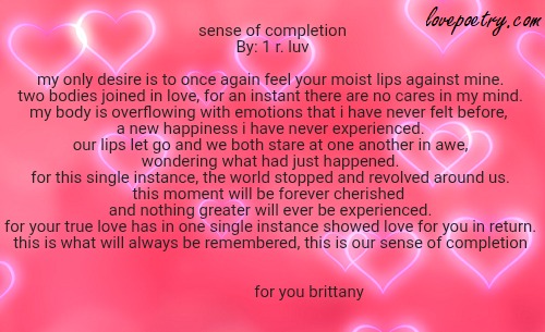 two bodies joined in love, for an instant there are no cares in my mind.