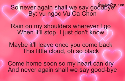 So never again shall we say goodbye