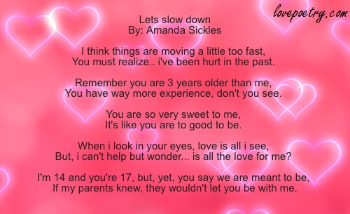I'm 14 and you're 17, but, yet, you say we are meant to be,