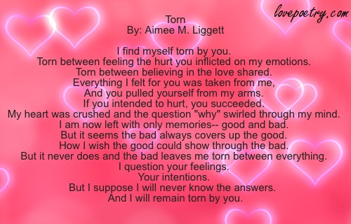And I will remain torn by you.