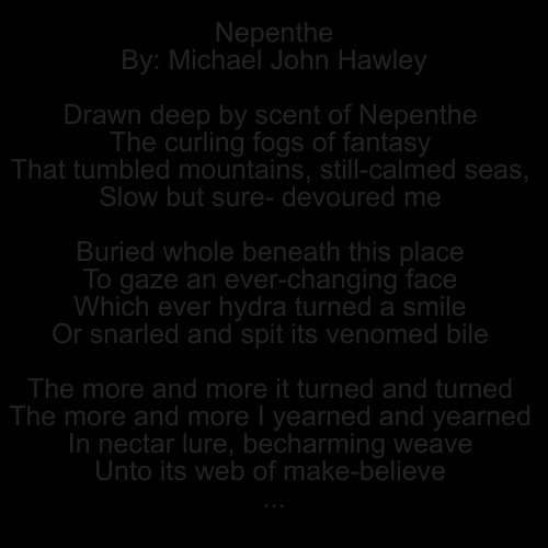 Drawn deep by scent of Nepenthe