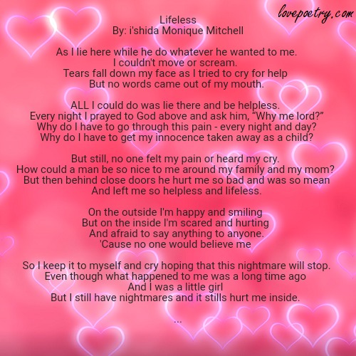 So I keep it to myself and cry hoping that this nightmare will stop.